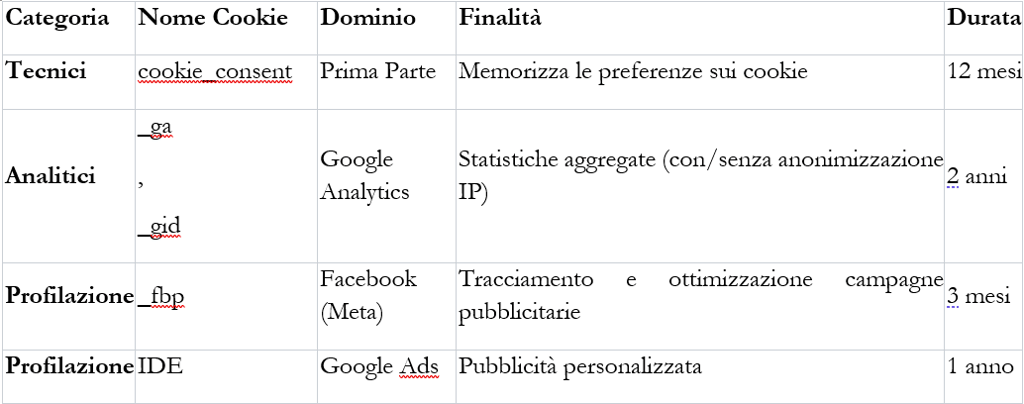 3. Tipologie di Cookie Utilizzati